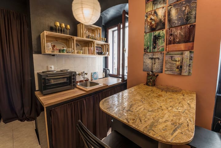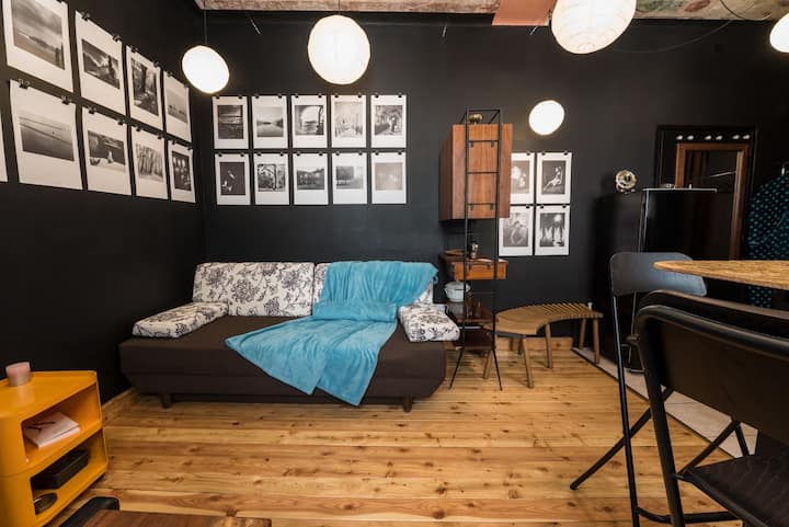 شقة استوديو سوداء فنية.