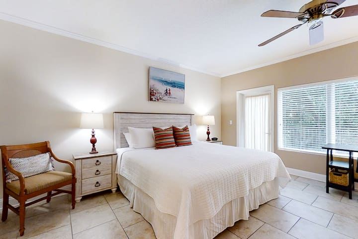 شقة بغرفتي نوم مناسبة للكلاب بالقرب من الشاطئ | مسبح | غسالة | مكيف هواء