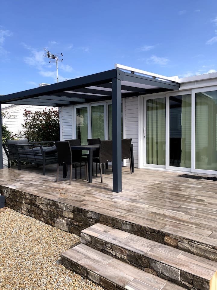 بيت متنقل خاص مع حمام سباحة