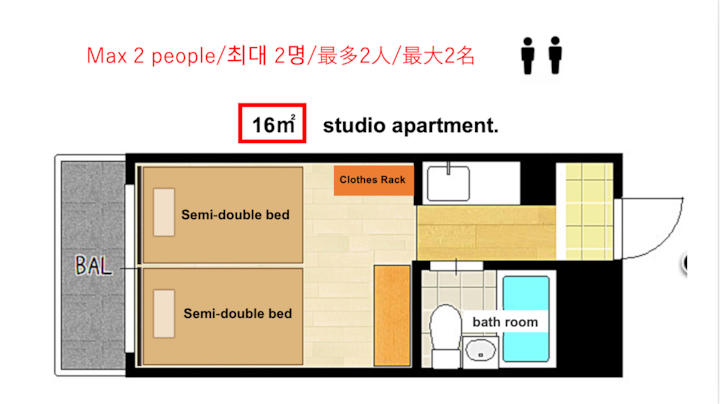 تبلغ مساحتها 16 مترًا مربعًا وشبه مزدوجتين.هذه الغرفة مخصصة لأولئك الذين يرغبون في الإقامة بسعر معقول حتى لو كانت صغيرة.إنها شقة قديمة، ولكن يتم تنظيف الغرفة بعمق من قبل موظفون محترفون.