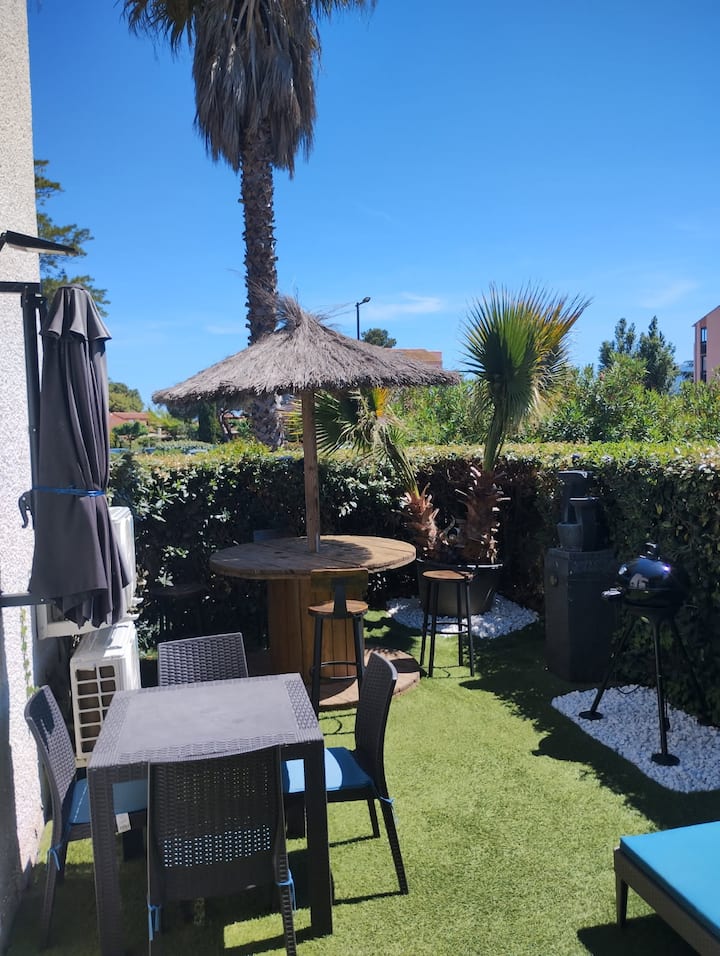 شقة جميلة مع حديقة على شاطئ البحر