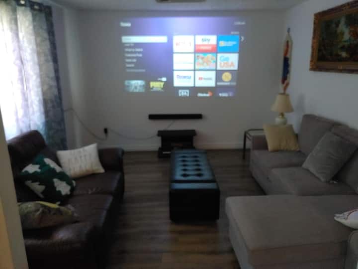 شقة كاملة ومريحة، تلفاز مع جهاز عرض 100 بوصة