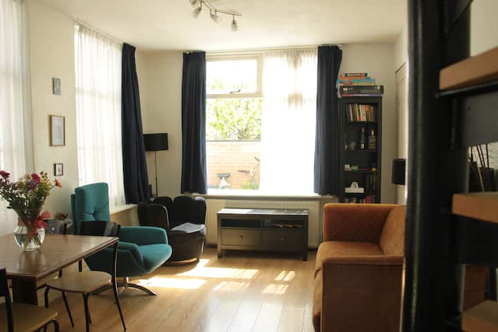 نحن نعيش في بيت عائلي لطيف في حي هادئ وعلى مسافة قريبة سيرًا على الأقدام من المركز التاريخي لدلفت.