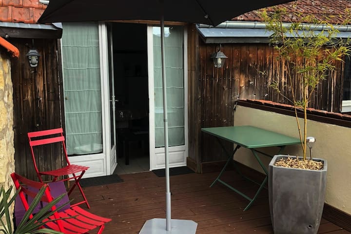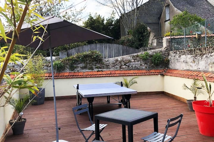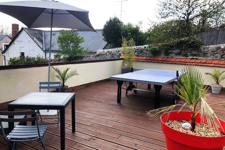 في منزل بنيامين -> تراس وتنس الطاولة من 2 إلى 4 أشخاص.