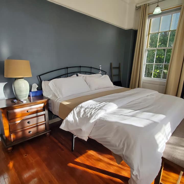 وسط المدينة، الطابق الأول مع سريرين بحجم كينج، مناسب للحيوانات الأليفة