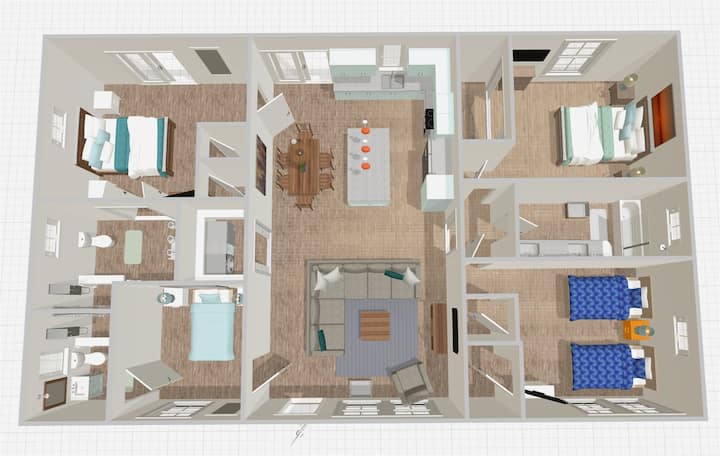 - 4 غرف نوم