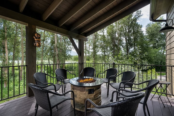 بيت فاخر مع مدفأة وتراس كبير بالقرب من حديقة جوسون الوطنية