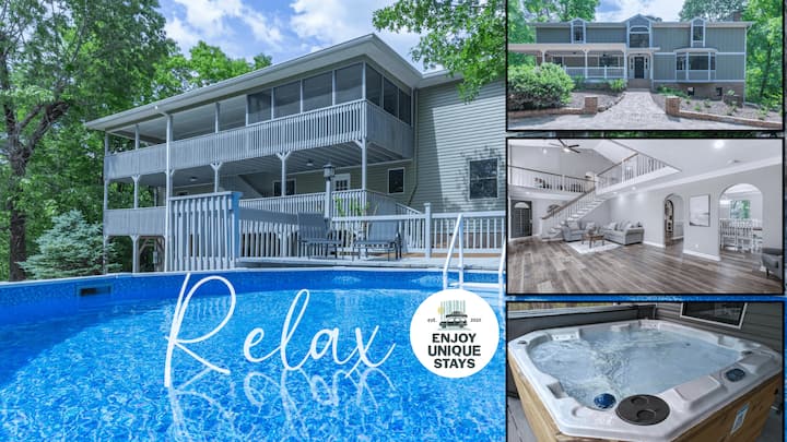 ملاذ كبير على جانب التل مع حمام سباحة وحوض استحمام ساخن!