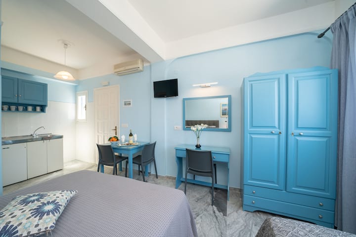 لقد ولدت وترعرعت في سامي، كيفالونيا. أنا أحب مسقط رأسي ولهذا السبب ما زلت أقيم هنا طوال العام. لقد درست التصميم الداخلي، لكنني كنت مشغولًا مع استوديوهاتي منذ عام 2004. المناخ المعتدل والجو المريح والضيافة الدافئة للسكان المحليين والمناظر الطبيعية الفريدة للبحر الجامح مع الجبال المهيبة ليست سوى بعض الأسباب التي تجعلني أختار العيش هنا ولماذا أعتقد أنها وجهة مثالية لقضاء عطلة أحلامك. لقد قدمت كل حبي ورعايتي لكل استوديو، حتى يستمتع ضيوفي بكل لحظة من إقامتهم. سيكون من دواعي سروري أن أرحب بك في استوديوهات برنس وأن أشارككم جمال وأسرار جزيرتي! في نهاية عطلتك، سيكون لديك فقط ذكريات جميلة ورغبة في العودة إلى كيفالونيا الساحرة واستوديوهات برنس!