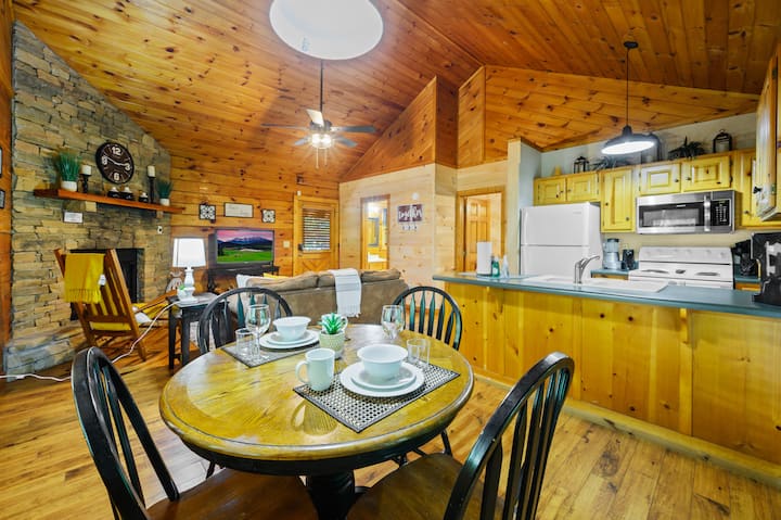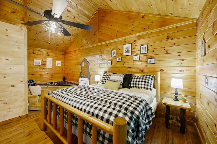 الموقع! كوخ خشبي، حوض استحمام ساخن، مدفأة، حمام سباحة، صيد