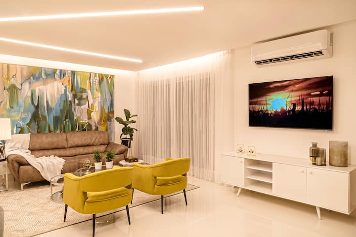 شقة فاخرة بسيطة ومريحة، بإطلالة مثالية