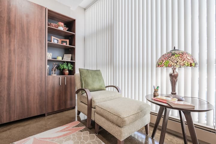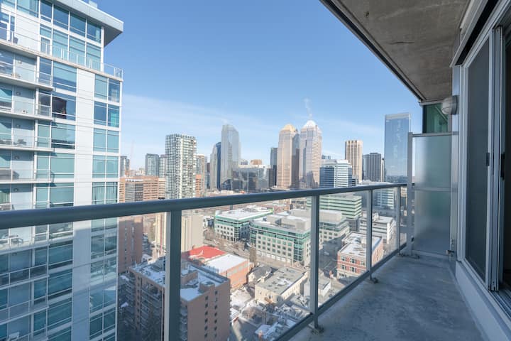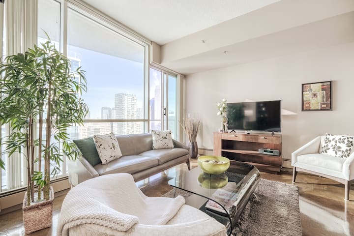 شقة حديثة بغرفتي نوم، إطلالات، موقف سيارات في وسط مدينة كالغاري