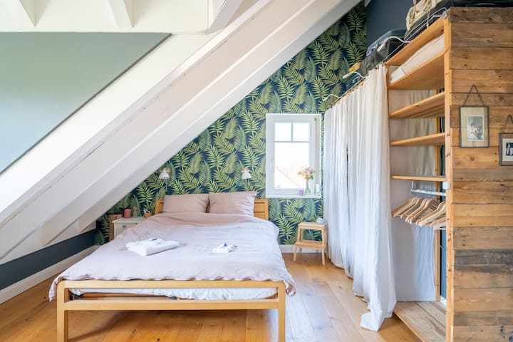 غرفة أنيقة مع ساونا خاصة، على حافة الغابة