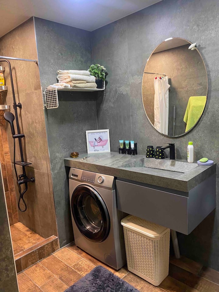 شقة عصرية فسيحة بغرفة نوم واحدة، مع شرفة خاصة
