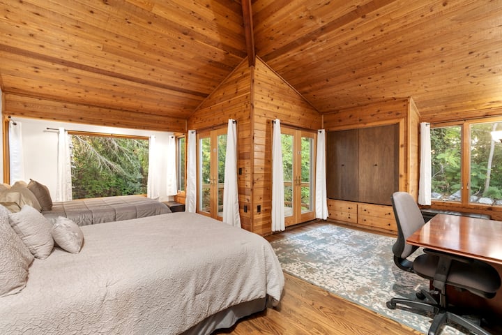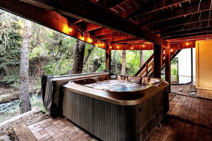 بيت على ضفة نهر مع حوض استحمام ساخن بالقرب من منتجعات التزلج