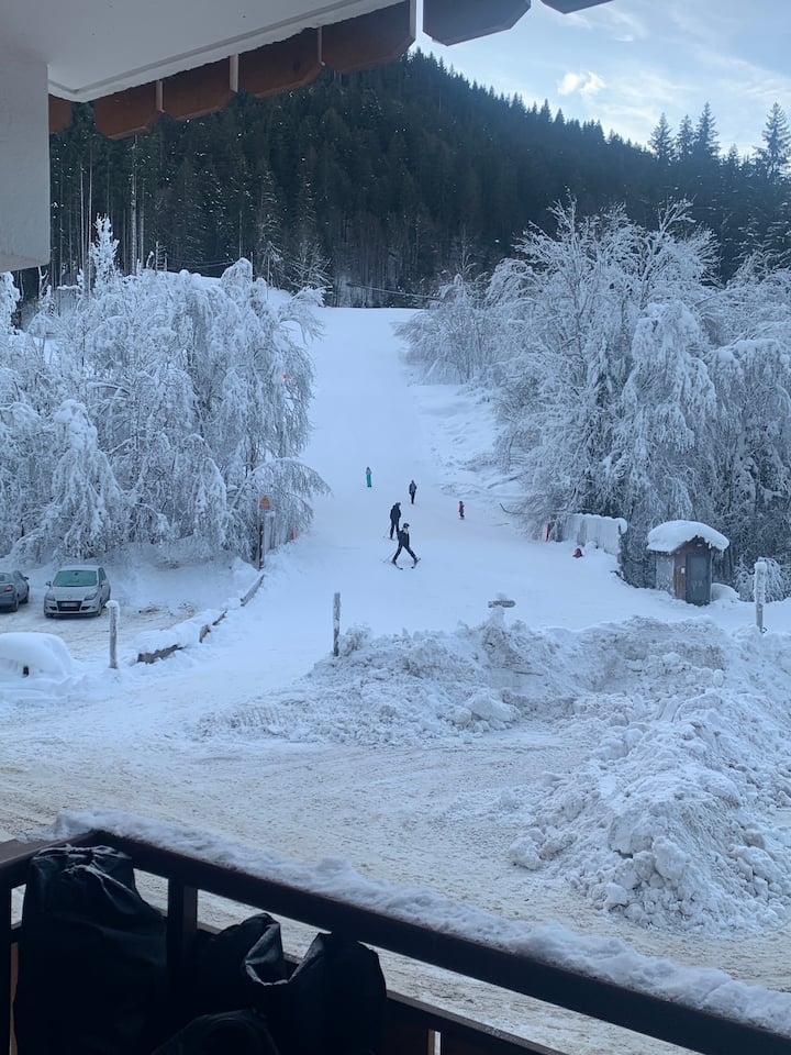 منصة تزلج مريحة في مورزين. التزلج في الداخل، بجانب المصعد
