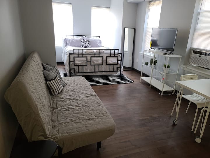 استوديو مشرق ومريح، مثالي للإقامات الطويلة
