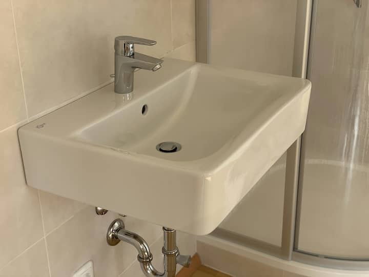 شقة صغيرة جديدة مع مطبخ، بالقرب من المركز