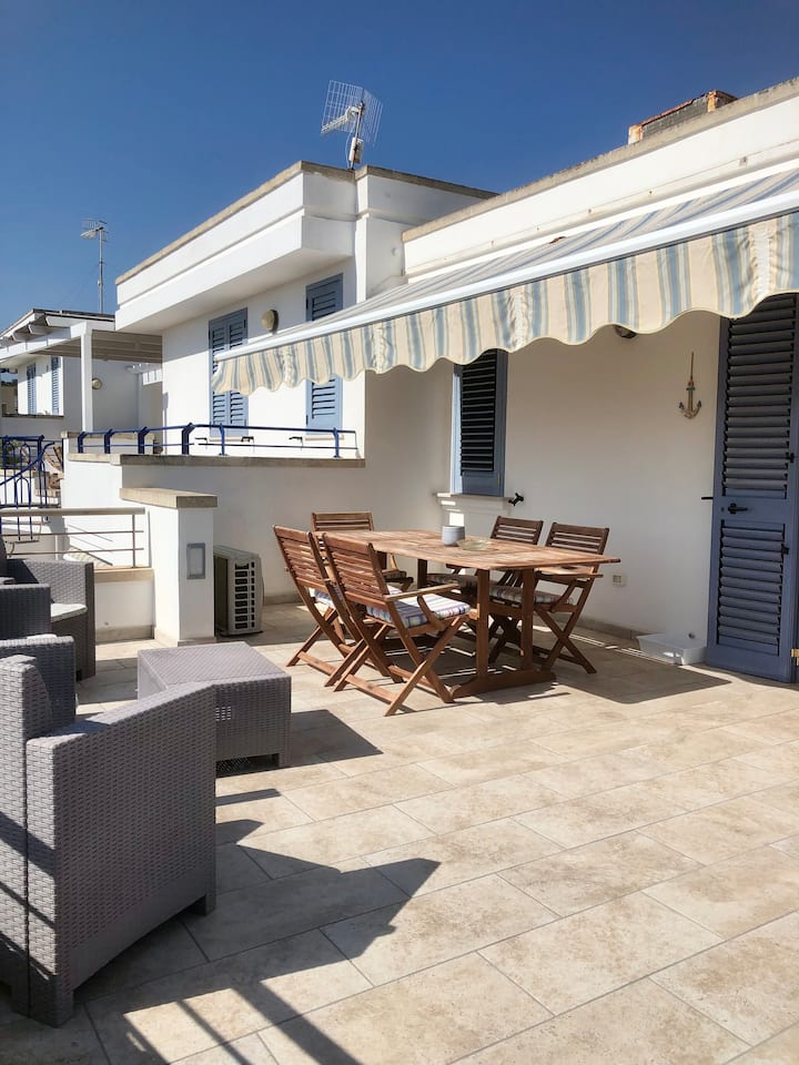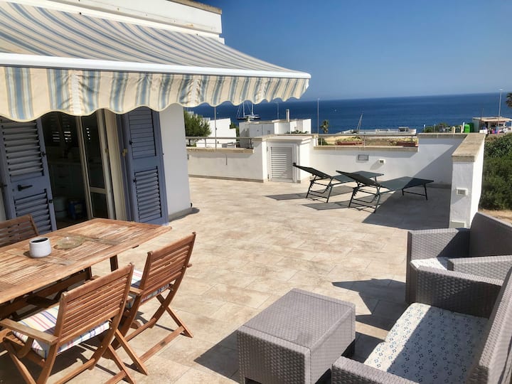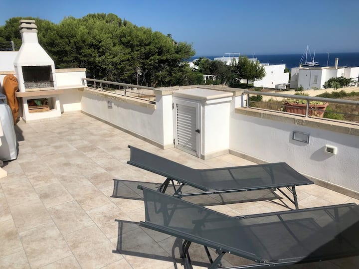 شقة بنتهاوس جميلة تطل على البحر مع شرفة