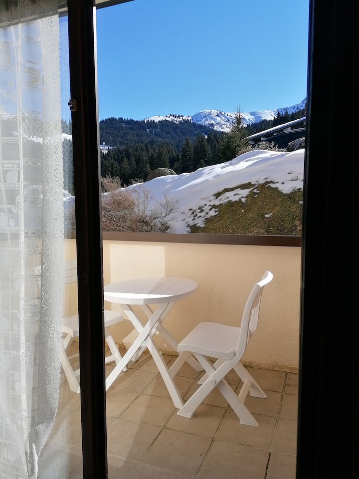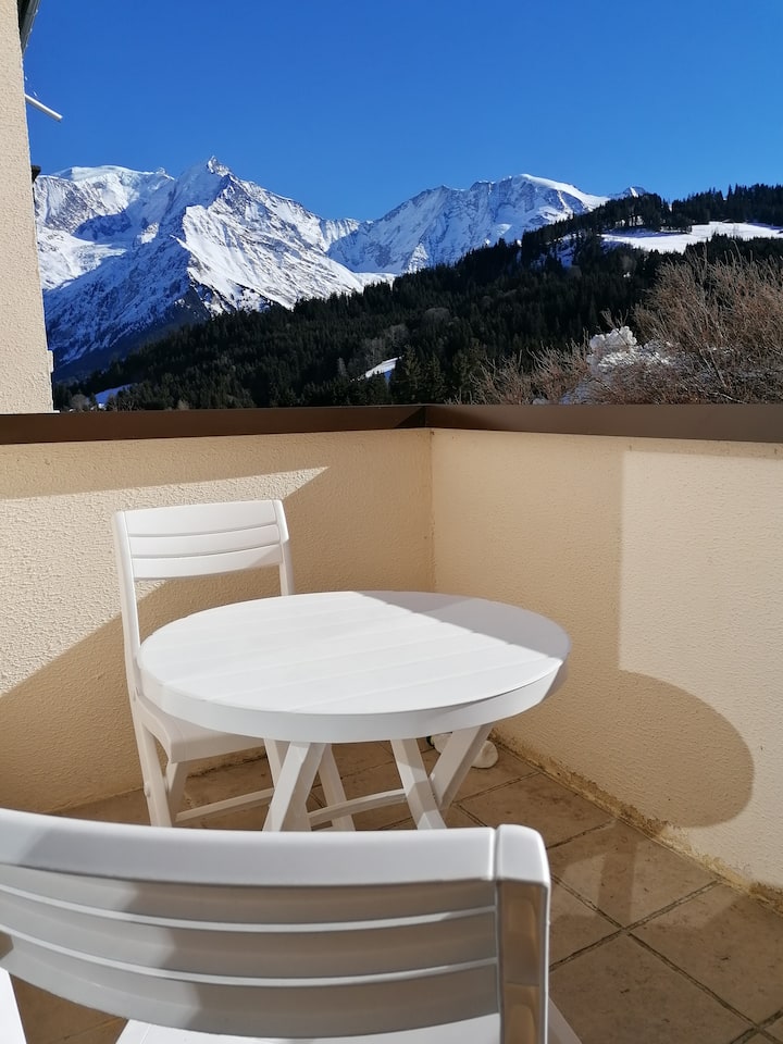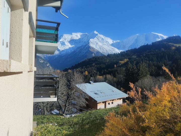 شقة بإطلالة على جبل مونت بلانك، مع حمام سباحة وملعب تنس