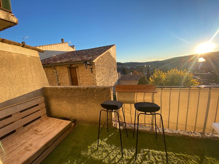 شقة كبيرة مكونة من غرفة واحدة مطلة على التلال في قلب منطقة بروفانس