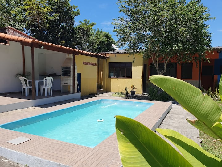 بيت أصفر اللون مع حمام سباحة على بعد 100 متر من شاطئ إيتاونا