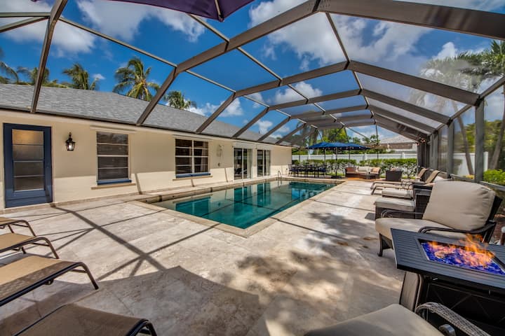 حمام سباحة ضخم مدفأ بالمياه المالحة، وباربيكيو، وحفرة نار!