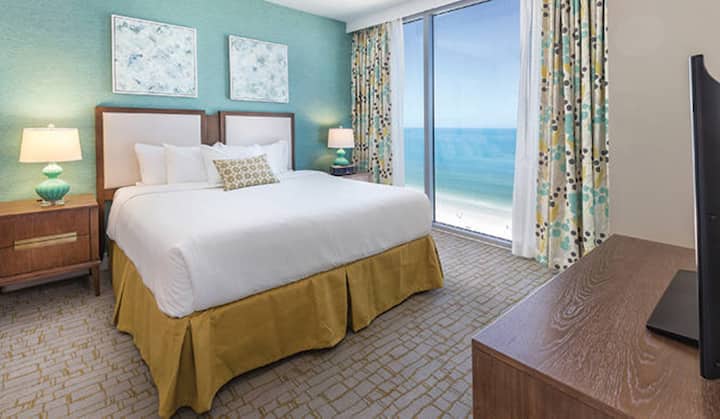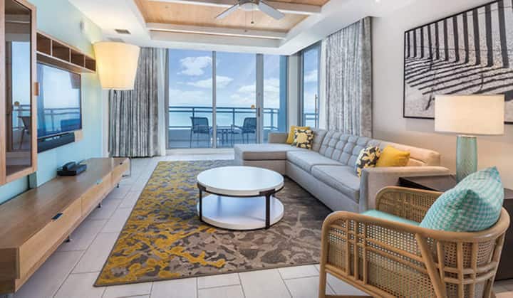 تبلغ مساحة هذا الجناح الفاخر الفسيح المكون من غرفتي نوم حوالي 1،120 إلى 1،214 قدم مربع. سوف تستمتع بسرير كينج في غرفة النوم الرئيسية وسريرين كاملين في غرفة نوم الضيوف وأريكة نوم كبيرة في غرفة المعيشة. تشمل الميزات الإضافية مطبخًا كاملاً ومنطقة لتناول الطعام وحمامين وغسالة/مجفف وشرفة. الحد الأقصى للإشغال هو ثمانية. تتسع منطقة النوم الخاصة لستة أشخاص.