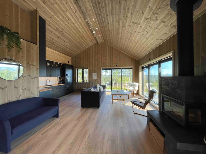 كوخ واسع مع ساونا وإطلالة وإمكانيات للتنزه