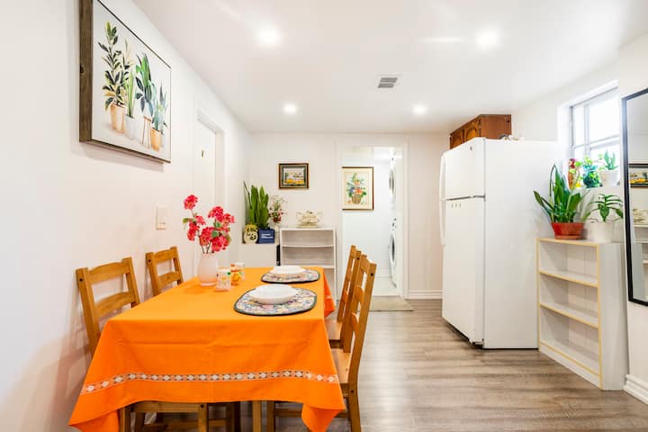 سرير بحجم كوين في الطابق الرئيسي، على بعد دقيقة واحدة سيرًا على الأقدام عن محطة الحافلات.