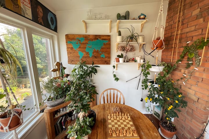 ما الذي يجعل مسكني مميزًا: غرفة التشمس مليئة بالنباتات والسجلات