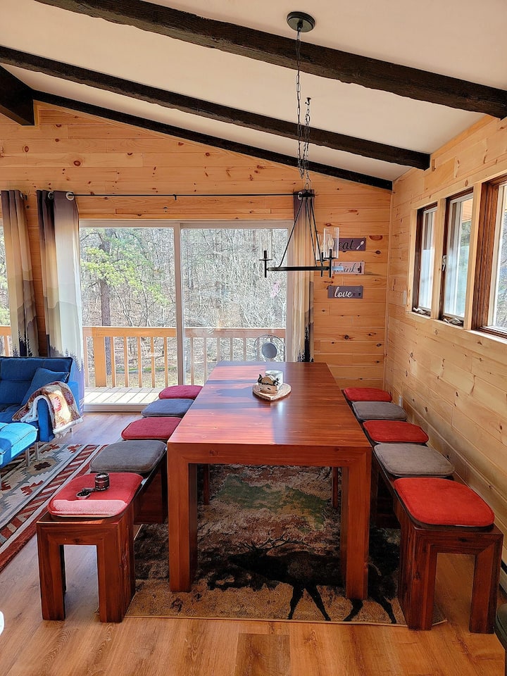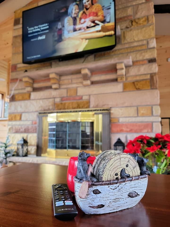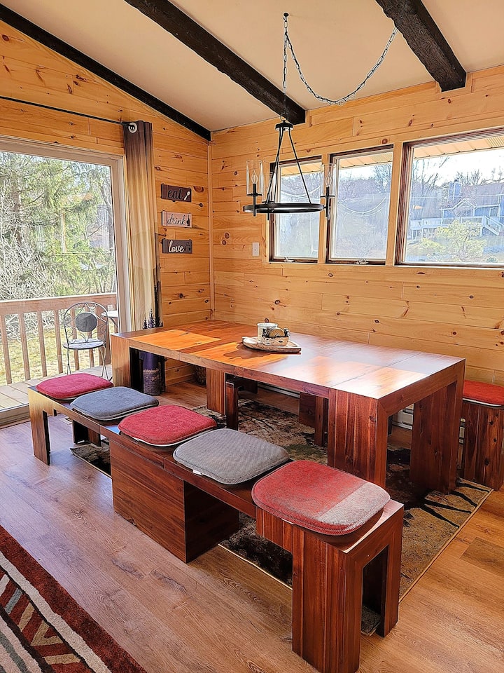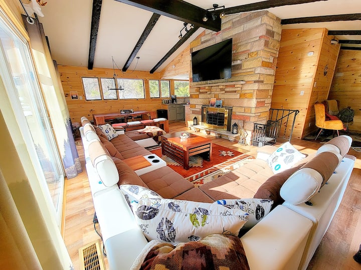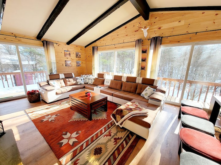 بيت خشبي مريح وواسع مع غرفة ألعاب.