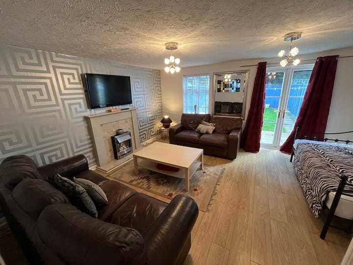 مناسب للحيوانات الأليفة، وموقف سيارات، وواي فاي. حديقة. عروض خاصة للإقامات الطويلة. وسط سوليهال، محطة HS2، مطار NEC. بيت مريح عصري معاصر.