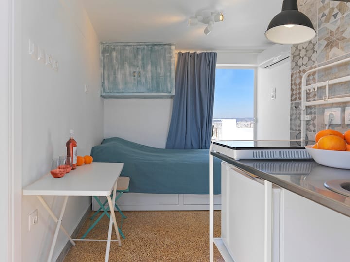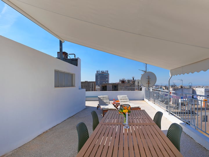 شقة علوية صغيرة مع تراس مذهل بالقرب من المترو