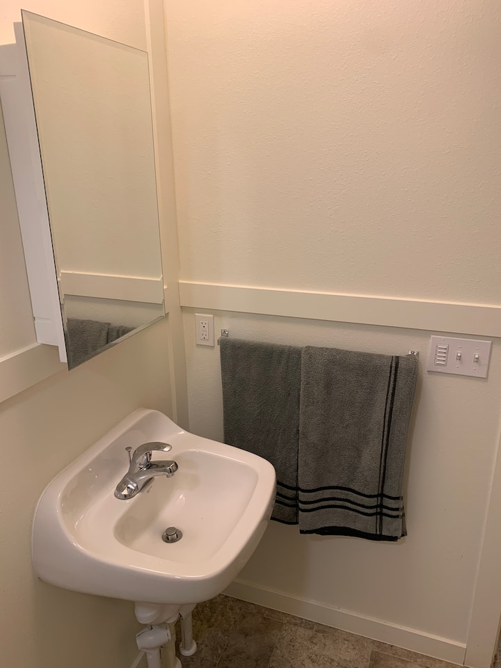 بيت بغرفة نوم واحدة ومطبخ صغير وموقف سيارات مظلل