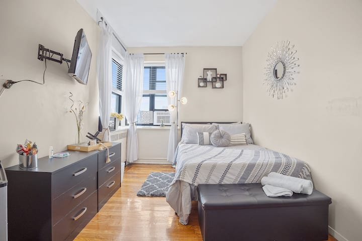 غرفة برونكس أنيقة، حمام مشترك، قريبة من القطار