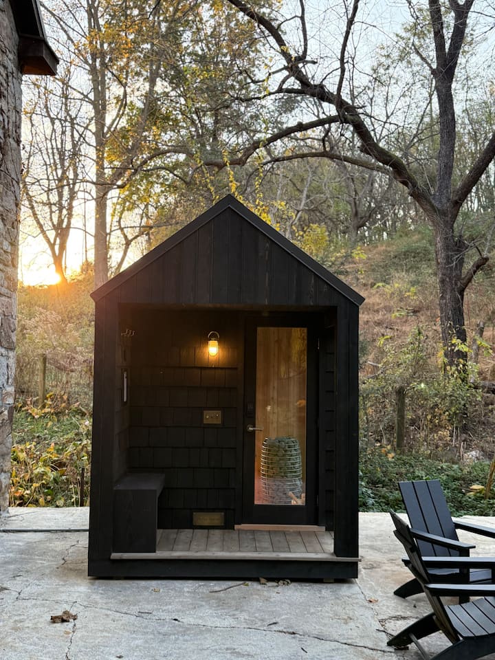 مصنع تقطير تم ترميمه | غرفة تشمس + ساونا خارجية