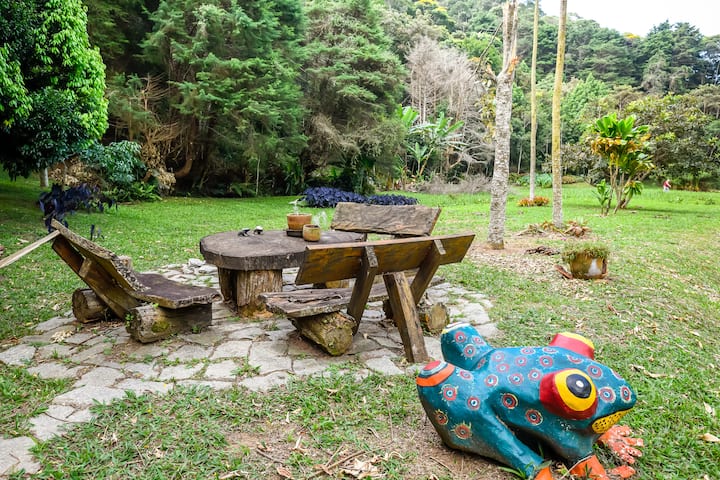 أنا أستاذ جامعي، ومنذ بداية عام 2020، أعيش في هذا المكان، حيث لدي شاليهان لاستقبال الأصدقاء والعائلة و/أو الإيجار. أعيش مع كلابي وقططي، وخلال الوباء، مع والدتي.