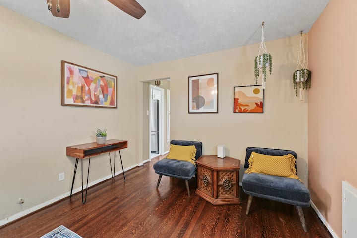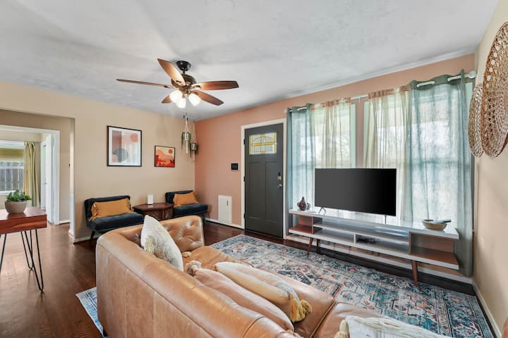 بيت مريح مكون من 3 غرف نوم وحمام واحد يقع على بعد 8 أميال من وسط المدينة