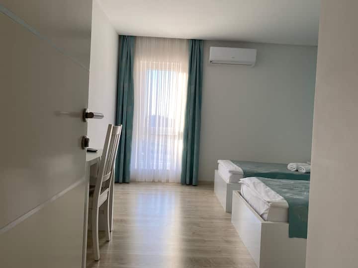 غرفة نوم مريحة بسريرين مفردين/مزدوجين في فندق رائع جدًا
