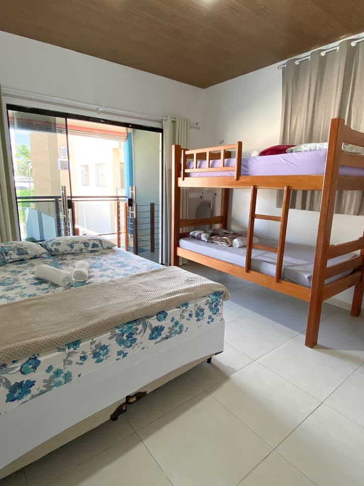 1 سرير حجم وسط و1 سرير بطابقين و1 مرتبتان أرضيتان و1 أرجوحتان شبكيتان