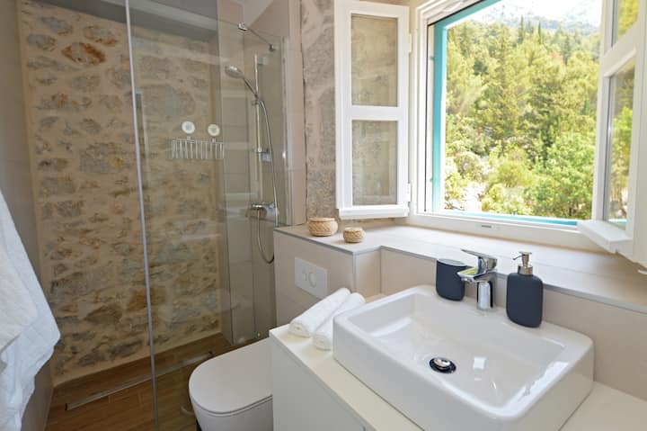 بيت حجري مثالي مع حمام سباحة