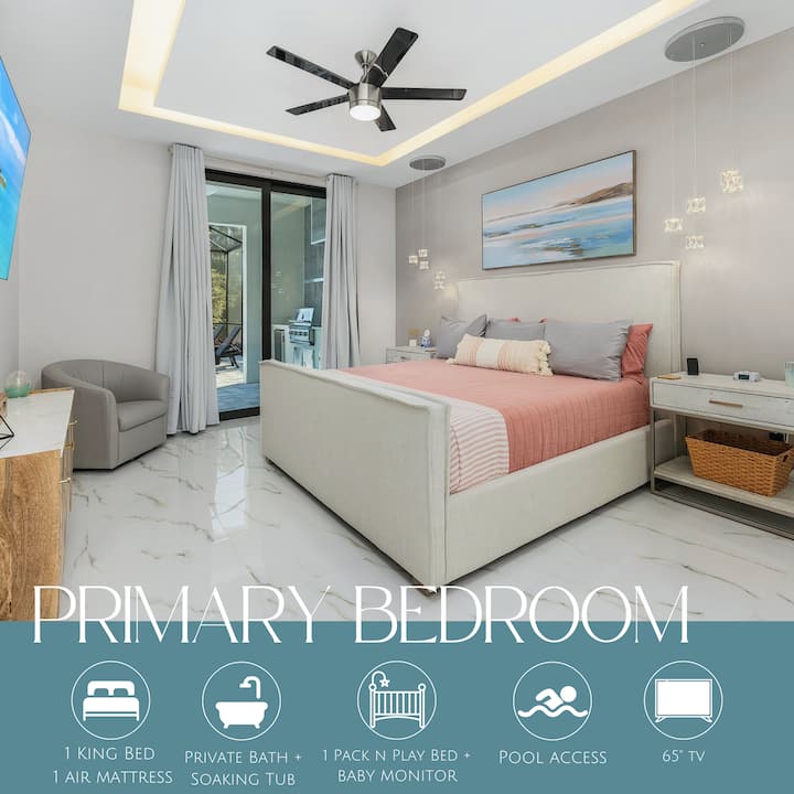 2 سرير كينج، حمام سباحة، قناة الخليج، غرفة ألعاب وقوارب الكاياك