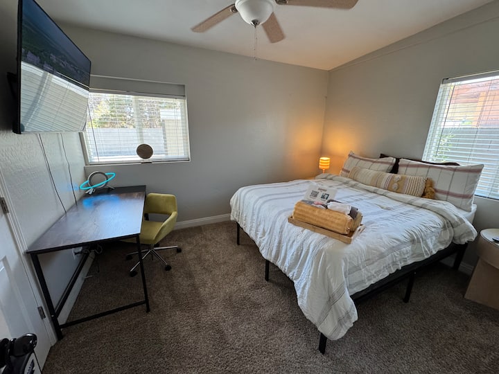 غرفة نوم رئيسية كاملة على بعد 5 دقائق من الشارع