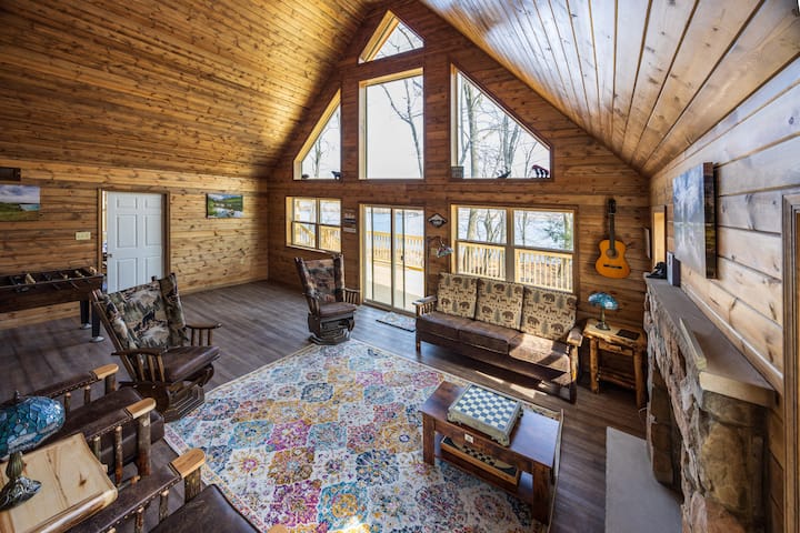 كوخ تزلج/6 غرف نوم على واجهة البحيرة + دور علوي، 6.5 حمام يتسع لأكثر من 14 شخصًا