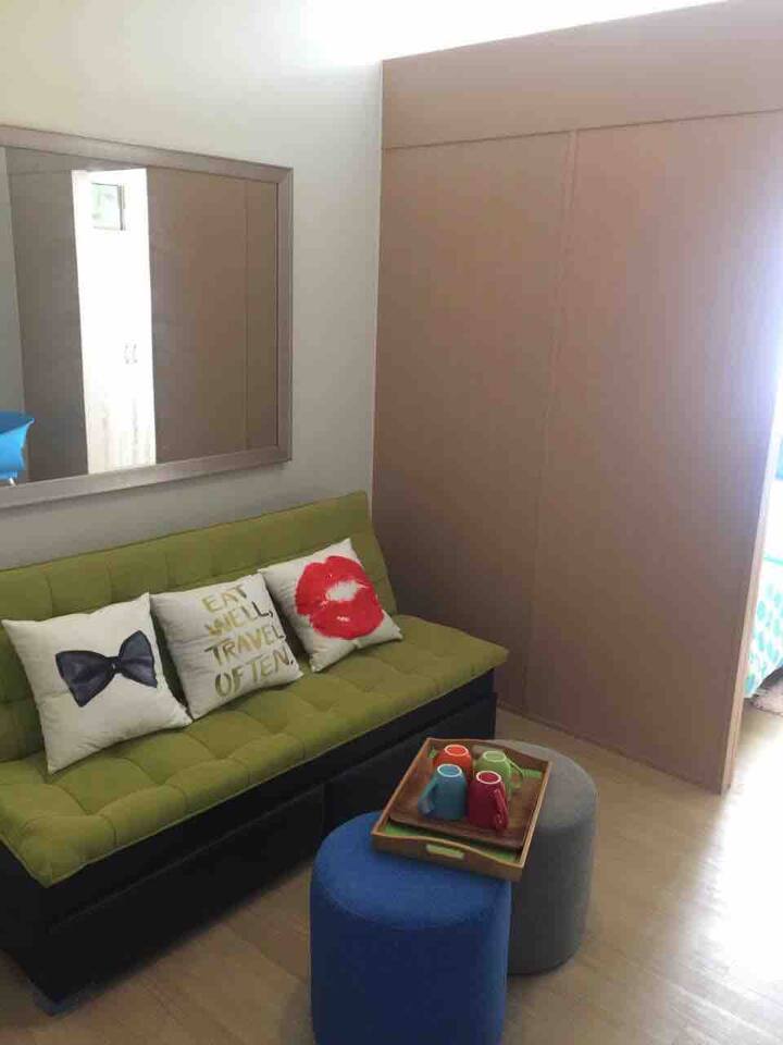 ❤️وحدة الطابق الثالث مكيفة الهواء بالكامل بالقرب من قاعة الاحتفالات ومنطقة حمام السباحة في مساكن الأشجار. يمكن أن تستوعب 3 أشخاص على الأقل ( 2 أشخاص في غرفة النوم و 1 أو 2 إضافيين على سرير الأريكة). على بعد 5 دقائق فقط سيرًا على الأقدام من SM Fairview وشرفات AYALA ومول Robinsons ، وعلى بعد 15 دقيقة سيرًا على الأقدام من الكنيسة والمطاعم والسوق. تبعد متاجر الغسيل والوجبات السريعة والمتاجر 2-3 دقائق سيرًا على الأقدام.