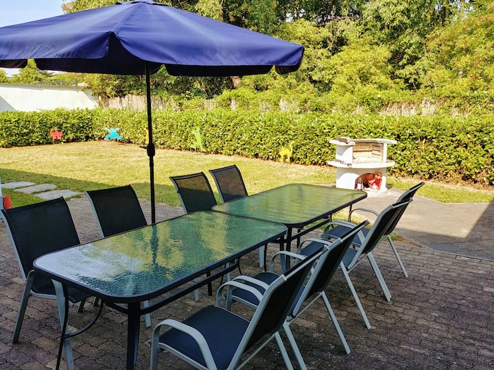 شقة كبيرة مكونة من 3 غرف نوم مع حديقة مشتركة