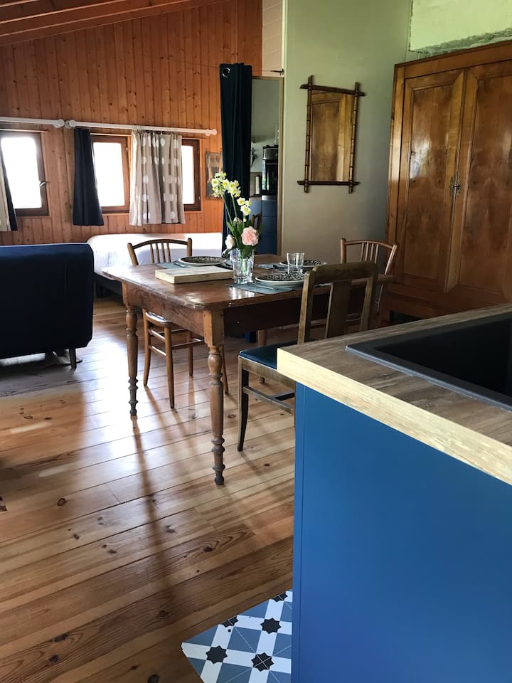 استوديو مريح لثلاثة مسافرين محاط بالمساحات الخضراء والشواطئ