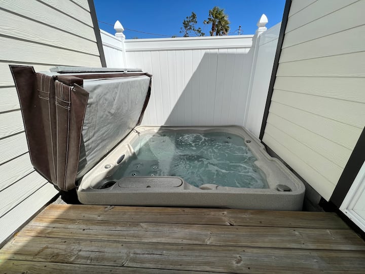 واحة خارجية صغيرة مع حوض استحمام ساخن