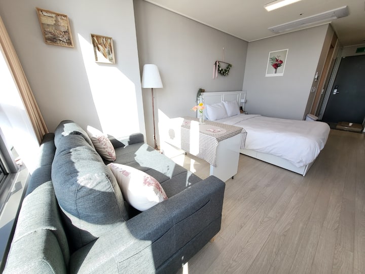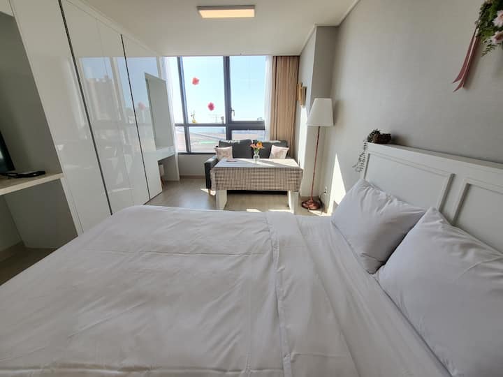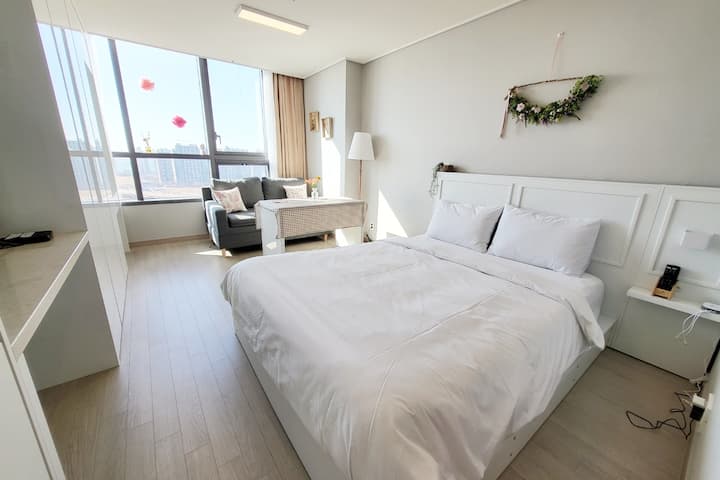 اشعر بحساسية سونغدو في مسكن مليء بالمشاعر المريحة والدافئة في البيئة النظيفة للمبنى الجديد.